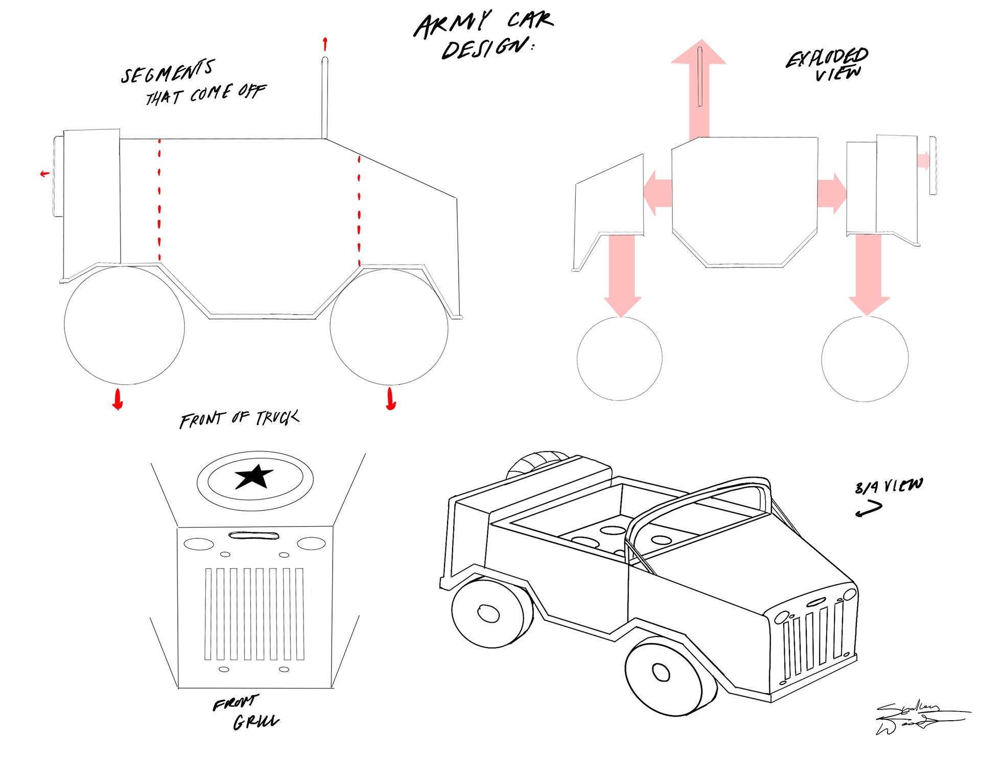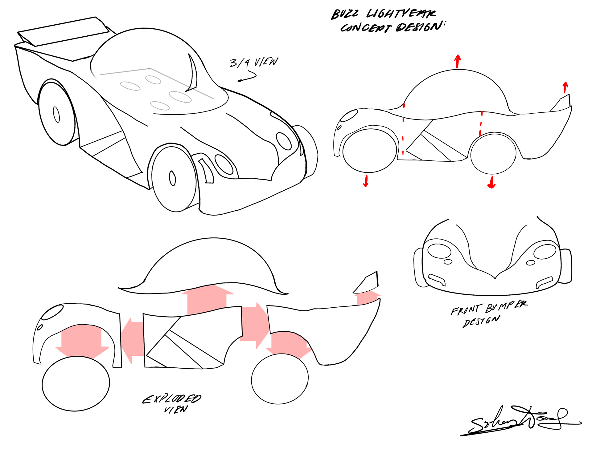 My team and I developed sketch page after sketch page of ideation and brainstorming to develop the best, most inspired concepts. The below pages show the evolution of an Automoblox car transformed into a Toy Story inspired Automoblox brand.